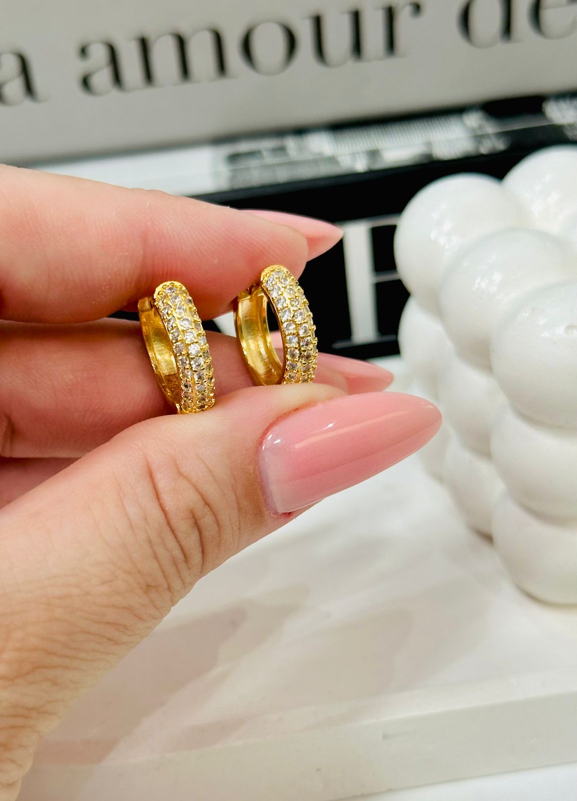 As argolinhas cravejadas são as queridinhas, um modelo clássico e versátil, é perfeito para quem busca um brinco atemporal e delicado. Cravejadas com microzircônias, que trazem mais charme e um brilho incrível para a joia. Além disso, as argolinhas são de click, um modelo super prático de colocar.